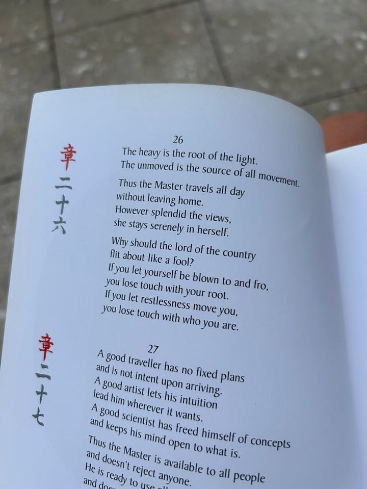 Taoism emphasizes receiving, softness, surrender; doing by nondoing. “when nothing is done, nothing is left undone.” I think Lao Tzu meant — don’t force it, y’all. let go of force, of resistance, of trying. soften, surrender, allow. the flow of life will carry you to where you need to go. (but even that’s not quite right…there’s nowhere we really need to go! the magic is in the journey. don’t worry too much about the rest.)